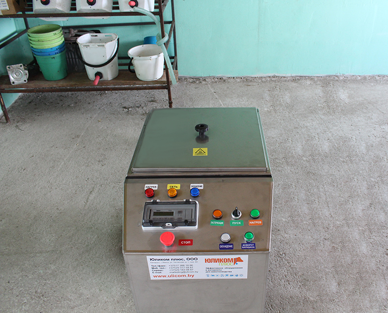 Размораживатель-пастеризатор молозива от ООО «Юликом Плюс» представляет собой ёмкость, внутри которой установлен вращающийся барабан с бутылками. Вращение играет ключевую роль в процессе пастеризации: оно обеспечивает равномерный разогрев молозива, что особенно важно для предотвращения перегрева с одной стороны и замораживания с другой, что было характерно для первых поколений подобных устройств.