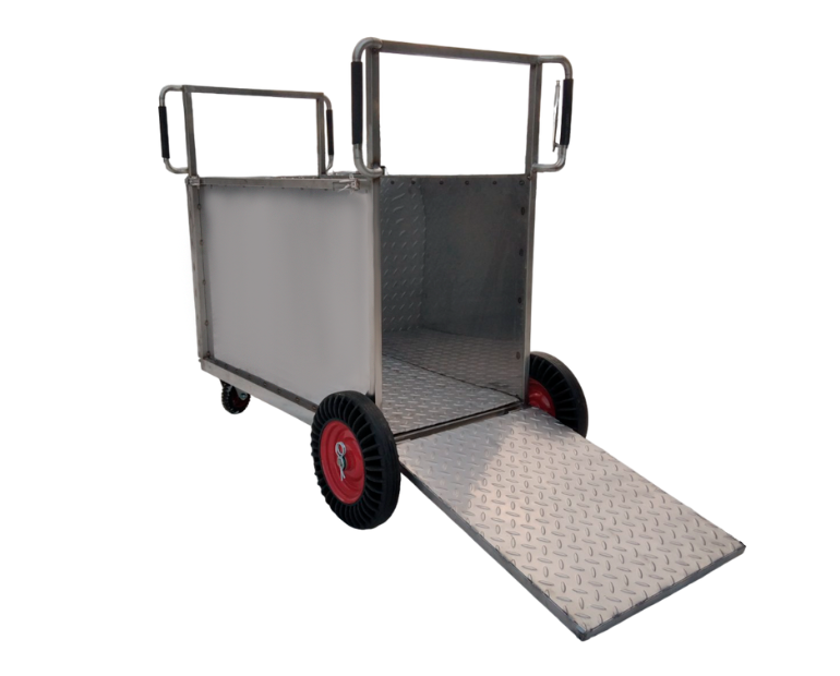 Удобно погрузить животное за счет опускающегося трапа с двух сторон тележки, что значительно упрощает погрузку и выгрузку.